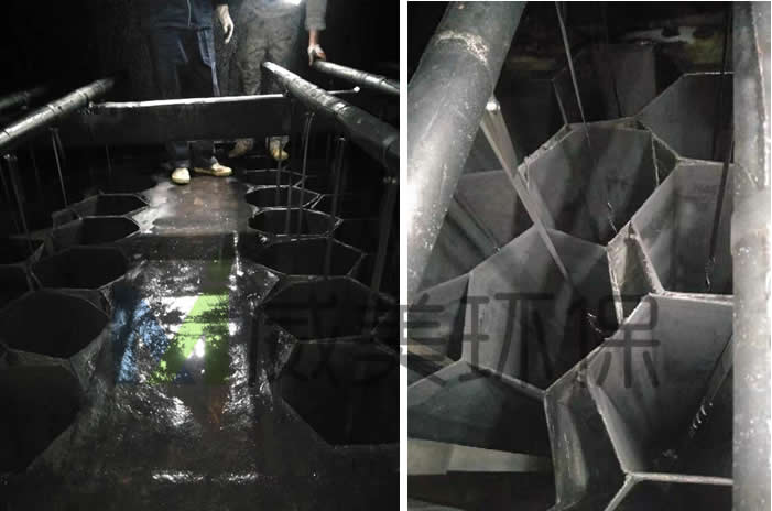 3.濕電除霧器氣體分布板有無損壞、脫落。有時煙氣流速較低部位氣流分布板有可能產(chǎn)生積灰、堵塞,需要檢查并進行人工清掃。