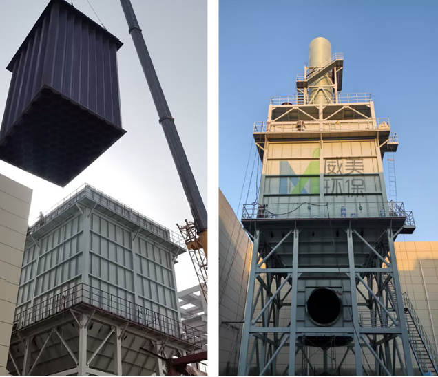 河北威美環(huán)保負責該濕電除霧器設備本體(陽極系統、陰極系統、上下氣室、氣體分布板、防擺框架、高低壓電器及配電柜等)的供貨及安裝。該設備處理煙氣量≤220000m³/h,<70℃,下進上出型。