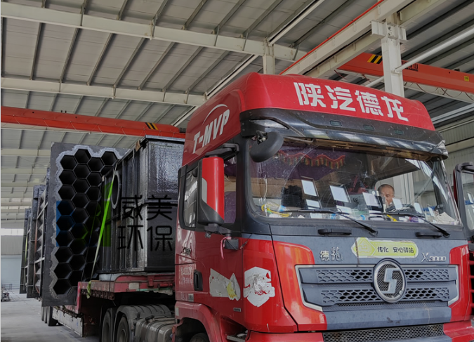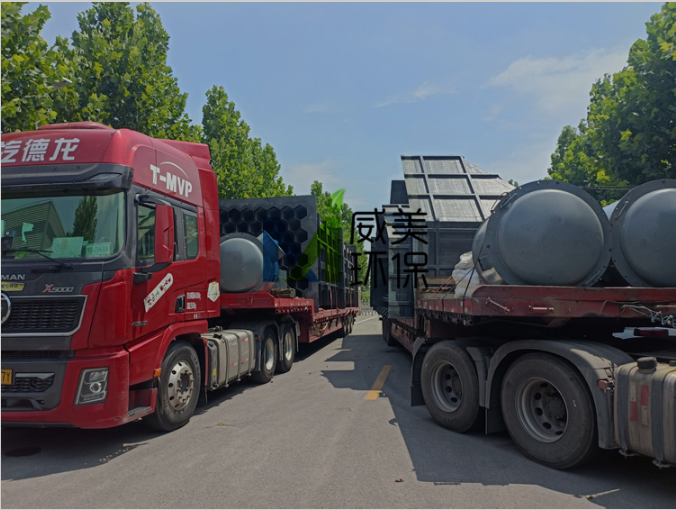 氰尿酸尾氣治理濕電除霧器裝車完畢,準備出發(fā)